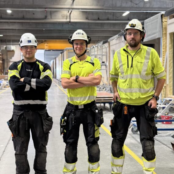 Kim Tore og Adrian Aarstad er prosjektledere for større bygg hos oss, og vi tegner våre installasjoner i 3D. «Med prosjektering og tegning i 3D blir det mindre kollisjoner og det blir et godt samarbeid mellom fagene!» sier Kim Tore